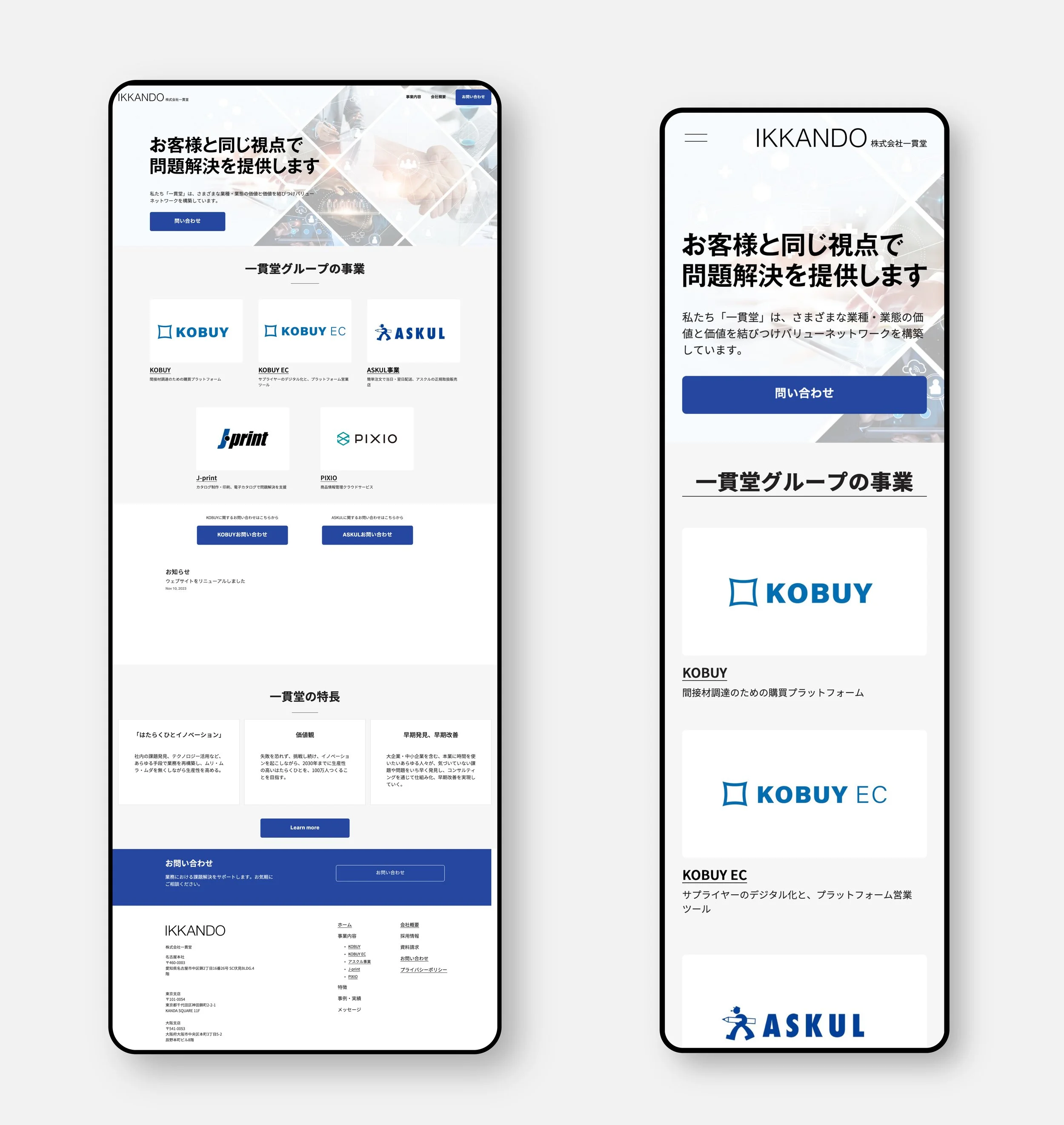 toBe向け通販事業やDX事業等を多数展開する株式会社一貫堂のコーポレートサイトです。システムはNY発の高機能オールインプラットフォーム・Squarespaceを使用しています。