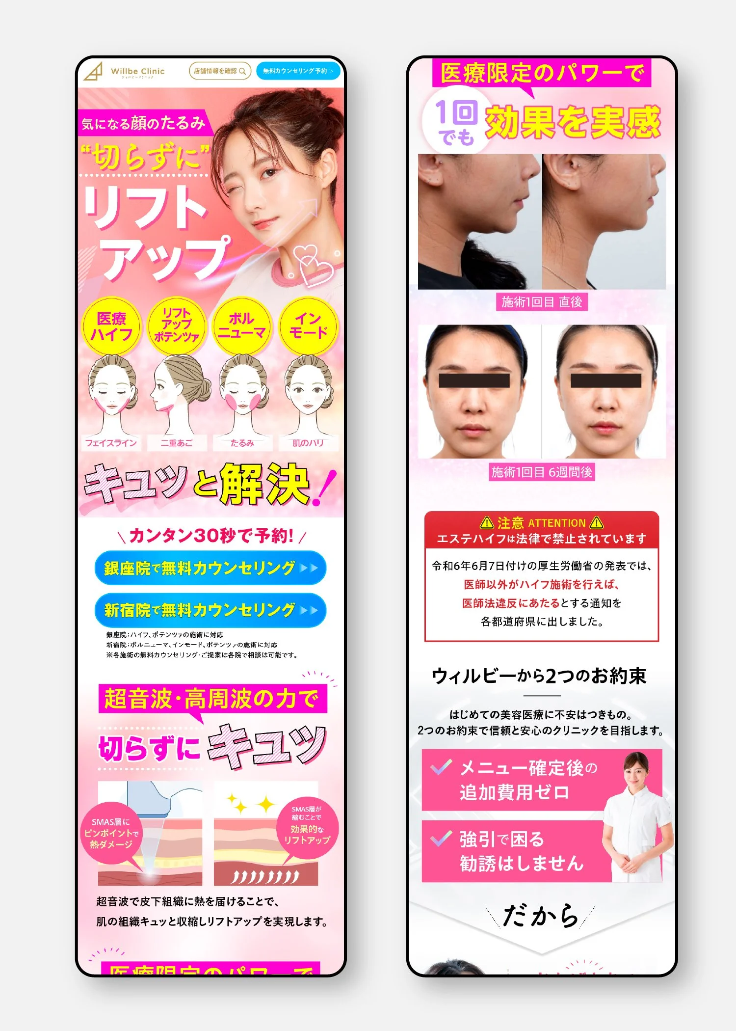 美容系サービスの広告用LPデザインです。